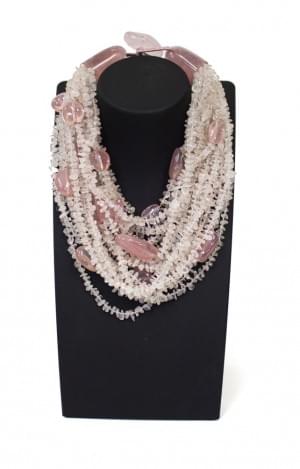 3146. Collier de perles de verre facettées terminé par un fermoir nœud