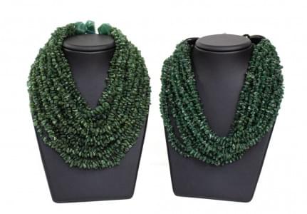 3159. Lot de deux colliers mutli-rangs, aventurine et probablement éme...