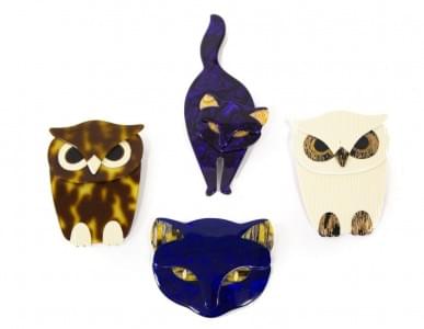 3167. Léa Stein, lot de quatre broches à motif de deux chats et deux h...