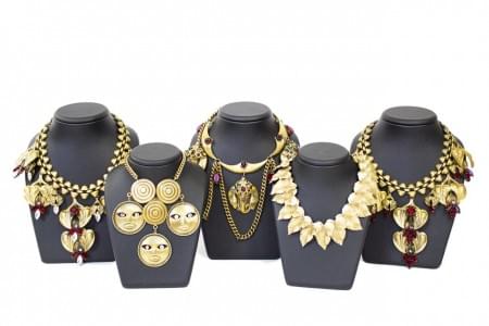 Métal doré. On joint un ensemble de bijoux fantaisie à motif de...