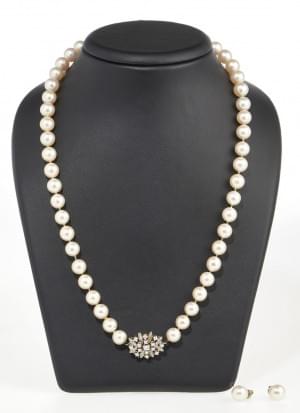 3179. Collier de perles terminé par un fermoir serti de diamant
