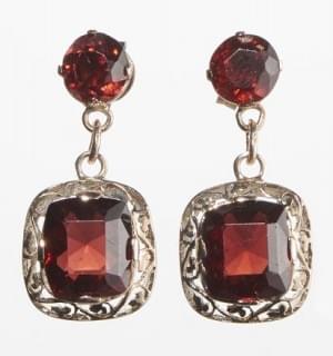 3184. Boucles d'oreilles serties de grenats taille rectangle rehaussés...