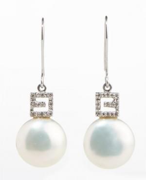 3185. Boucles d'oreilles serties de perles plates rehaussées de diaman...