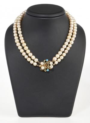 3192. Collier de deux rangs de perles terminé par un fermoir serti de...