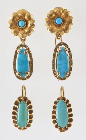 3193. Lot de deux paires de boucles d'oreilles serties de turquoises