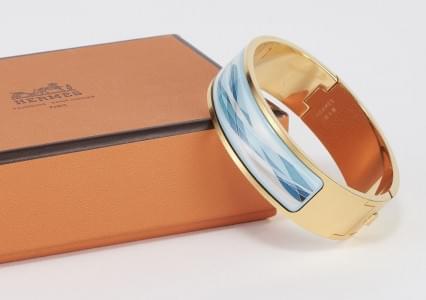 3198. Hermès, bracelet jonc ouvrant émaillé d'un décor de vagues styli...