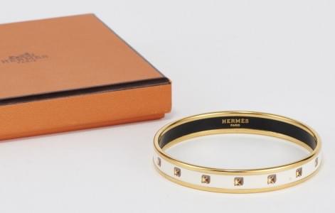 3199. Hermès, bracelet jonc émaillé blanc à dessins de pointes de diam...