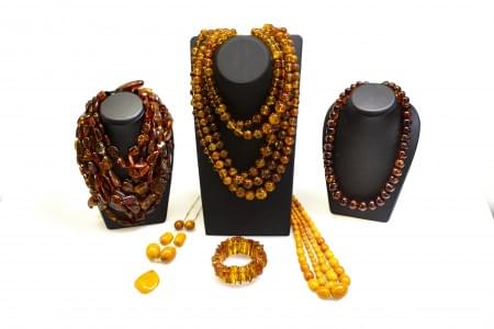 3161. Lot de divers colliers de perles d'ambre brun et jaune