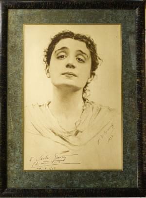 Portrait de Eleonora Duse, estampe, dédicacée à Sacha Guitry, si...