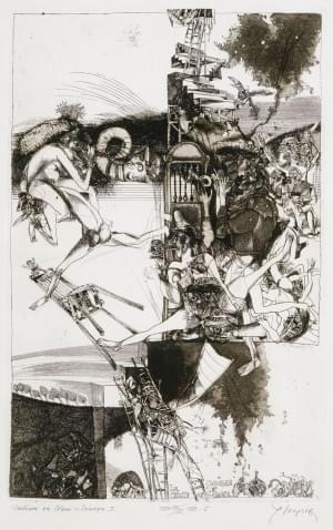 La chute de Sodome et Gomore, 1980-1982, gravure en noir, signée...