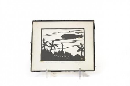 Paysage oriental, découpage, signé Ernst Serait, 15x19 cm