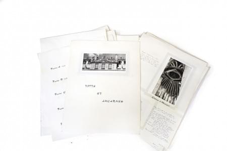 Ensemble de dessins, collages et textes explicatifs, probablemen...