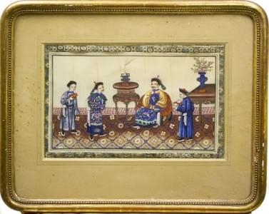 Scène de palais, gouache sur papier de riz, 20x30 cm