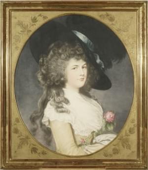 Portrait de femme au chapeau, pastel sur papier, 53x45 cm