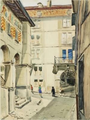 Vue de la maison Tavel, aquarelle sur papier, signée et située G...