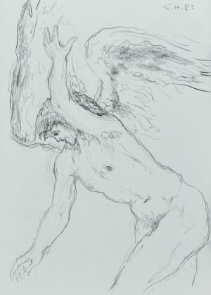 Ange, mine de plomb sur papier, monogrammé et daté 83, 42x30 cm