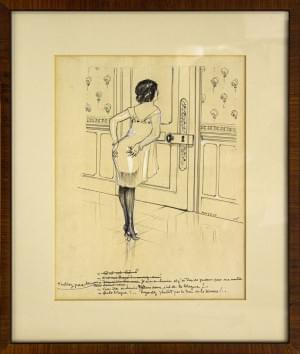 Femme au voile rouge, technique mixte sur papier, signature non...