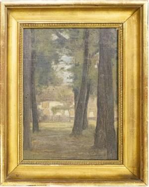 Vue d'un parc, huile sur toile, signée et datée 45, 33x40 cm