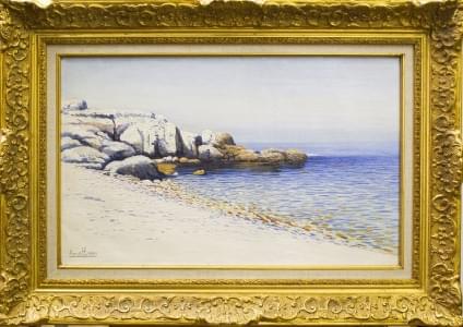 Falaises au bord de la mer, huile sur toile, 46x64 cm