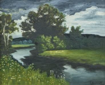 Paysage, huile sur bois, monogrammée et datée au dos 68, 36x51 c...