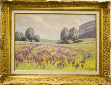 Paysage de campagne, huile sur toile, signée, 46x55 cm