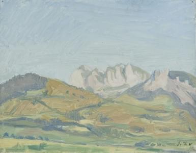 Vue d'un chalet dans les montagnes, huile sur carton, monogrammé...