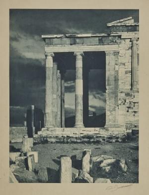 Architectures avec divinités, encre et aquarelle sur papier, sig...