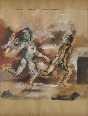 Atalante et Hippocrate et combat d'animaux, deux gouaches sur pa...