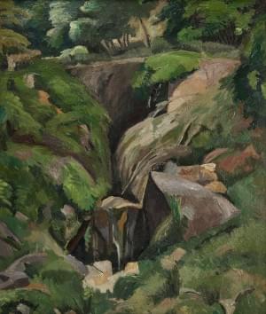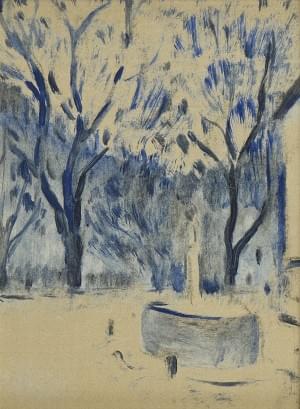 Fontaine sous les arbres, gouache sur papier, 20x15 cm