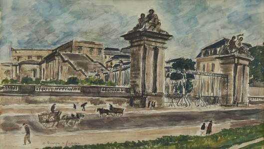 Les grilles de l'Orangerie de Versailles, plume et aquarelle sur...