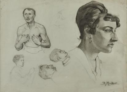 Trois esquisses de personnages, mine de plomb, signées et datées...