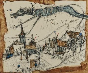 Bonneval et le cheval noir, plume et gouache sur papier, 40x50 c...