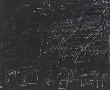 Abstraction sur fond noir, acrylique sur toile, 110x135 cm