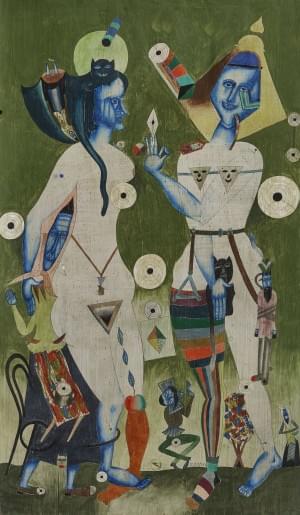 Composition à la lampe, aquarelle et gouache sur papier, signée,...