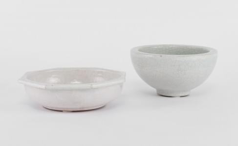 Coupe octogonale et bol, céramique émaillée céladon clair et ivo...