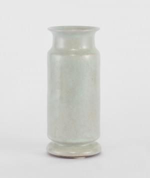 Vase rouleau, céramique émaillée céladon clair, signé Boas et nu...