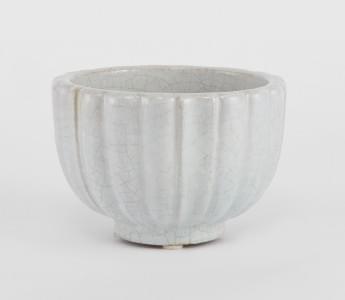 Cache-pot à cotes, céramique émaillée céladon clair craquelée, s...