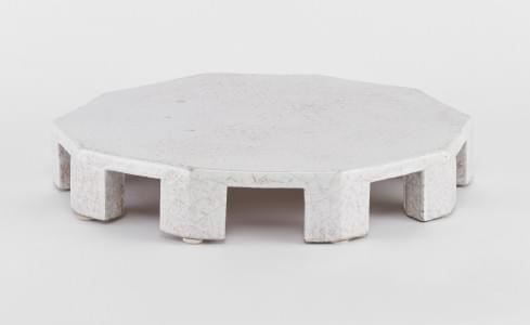 Grand support décagonal, céramique émaillée ivoire craquelée, si...