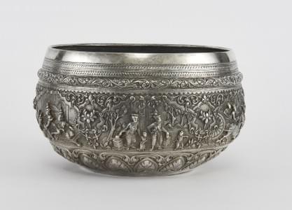 A décor repoussé de scènes animées, vendeur Coombes & Co, Rangoo...