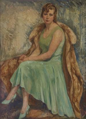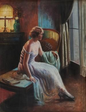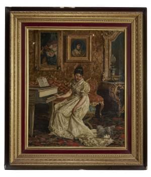 Elégante dans son intérieur, huile sur toile, signature non iden...