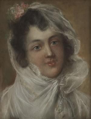 Jeune femme au foulard blanc, pastel sur papier, 34x27 cm