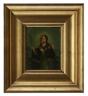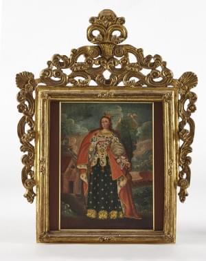 Reine martyre, huile sur toile. Cadre en bois sculpté, ajouré et...