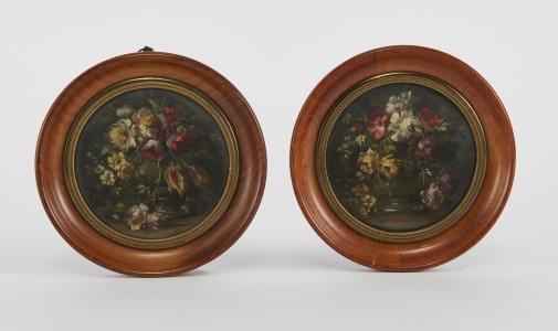Paire d'arrangements floraux, deux huiles sur panneaux, signées,...