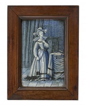 Femme de qualité en costume Renaissance, émail sur fer, 23x15 cm