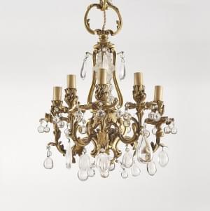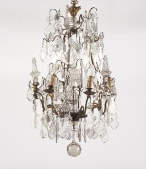 Bronze doré et pampilles de verre facetté, H 95 cm