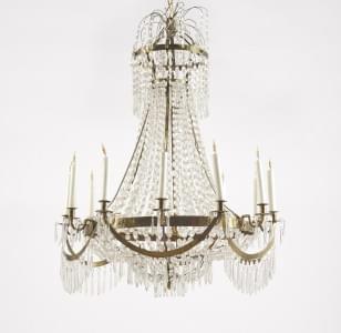 481. Lustre corbeille à douze lumières, pays scandinaves, XIXe s