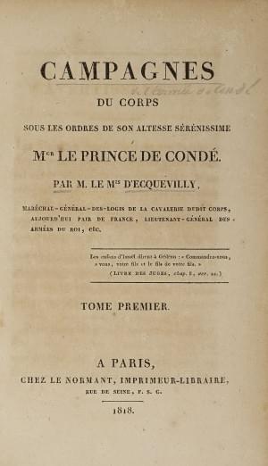 494. Marquis d'Ecquevilly, Campagne du corps sous les ordres de Son a...