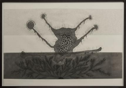 Head mirror reflective growth, technique mixte sur papier, 54x69...