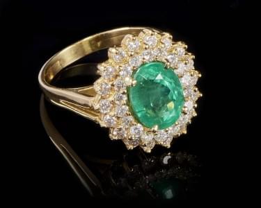 108. Bague sertie d'une émeraude taille ovale (env. 1 ct) entourée et...