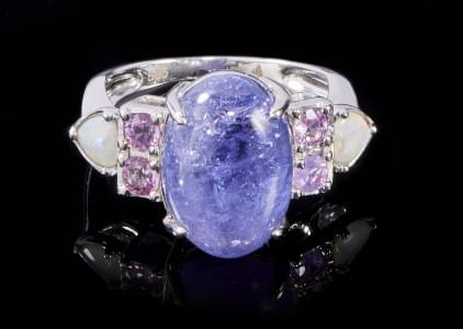 113. 5318*Bague sertie d'une tanzanite taille cabochon ovale épaulée...